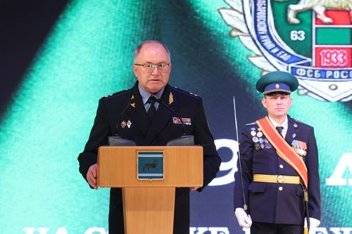 Собрание открыла церемония вноса Боевого знамени Краснознаменного Биробиджанского пограничного отряда. С поздравлениями к действующим сотрудникам и ветеранам пограничной службы обратился начальник Пограничного управления ФСБ России по Хабаровскому краю и Еврейской автономной области генерал-лейтенант Анатолий Уткин.