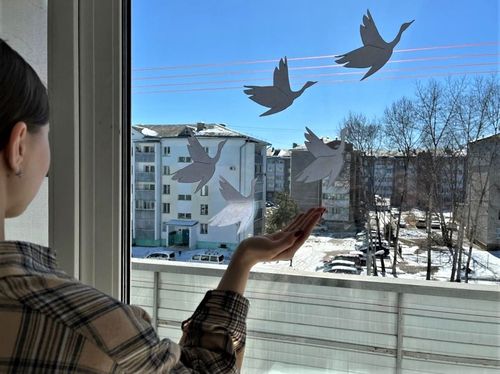 Журавли взмывают над страной. В Еврейской автономной области к акции уже присоединились воспитанники детского дома № 2 и кадеты Школы юных пожарных. Жители автономии размещают символы и на окнах своих автомобилей https://t.me/dom2eao/4154