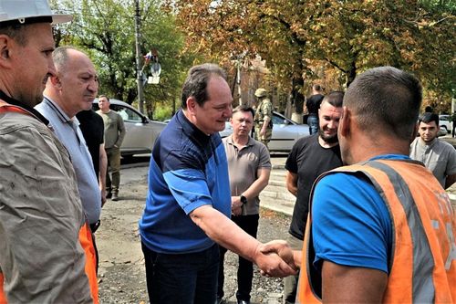 На днях, в рамках рабочей поездки в подшефный Амвросиевский район ДНР, со строителями встретился губернатор Еврейской автономной области Ростислав Гольдштейн.