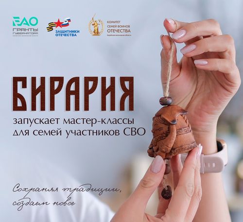 Мастера «Бирарии» подготовили мастер-классы по декоративно-прикладному искусству. Принять в них участие абсолютно бесплатно смогут члены семей бойцов спецоперации. Для жен и матерей художник Ольга Доманова подготовила творческие встречи у холста, а ремесленники Валерия Еремеева и Алина Хроменко - изготовление и роспись свечей. Подростков ремесленники Татьяна Фоменко, Артур Воробьев, Елена Дьяченко, Елена Заренбина, Ульяна Екименко и Надежда Ионенко научат работать с глиной, деревом, кожей и тканью. Для малышей дизайнер Марина Шарикова изготовит раскраску с мандалами. Объединяющими темами всех мероприятий станут культура коренных народов Приамурья и дальневосточная природа.