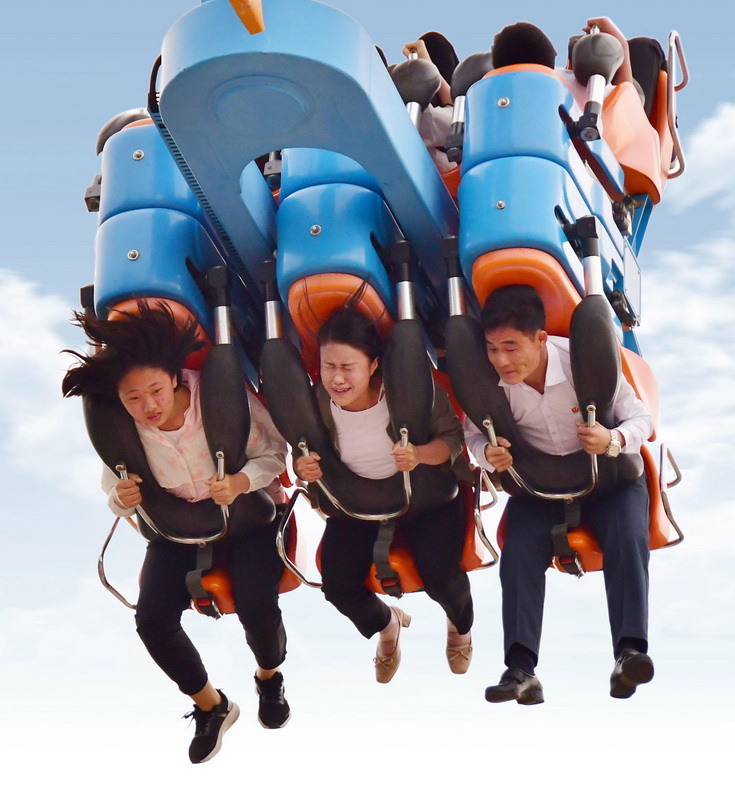 В городке аттракционов «Рынра» в Народной парковой зоне «Рынра» в столице КНДР – Пхеньяне, покрытой густой зеленью, в этот летний сезон полно горожан, которые проводят веселое время отдыха.