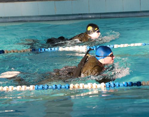 В Хабаровске на базе плавательного бассейна ЦСКА (СКА) в ходе  чемпионата Восточного военного округ по плаванию  состоялся этап  - плавание в военной форме с автоматом.