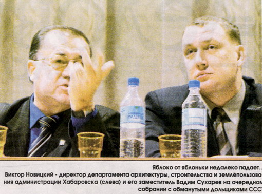 Участники строительства еще одного дома по программе «Накопительная схема приобретения жилья в городе Хабаровске» ТСЖ СССТ, учредителем которого является администрация города, намерены обратиться в правоохранительные органы. Поводом для этого послужил перенос сроков строительства, а также измнение стоимости 1 кв.м. Согласно договору с участниками строительства, первый дом в строящемся микрорайоне «Парус» должен был быть сдан в первом квартале 2007 года. Но на общем собрании участников ТСЖ СССТ-1 председатель ТСЖ, являющийся также замдиректора департамента архитектуры, строительства и землепользования муниципалитета Вадим Сухарев сообщил, что стройка будет окончена только в октябре.