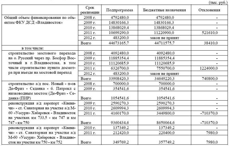 Кроме того, у Счетной палаты есть претензии к Федеральному казенному учреждению «Дирекция по строительству объектов дорожного хозяйства г. Владивостока как центра международного сотрудничества в Азиатско-Тихоокеанском регионе Федерального дорожного агентства» (ФКУ ДСД «Владивосток»). В частности, при выборочной проверке обоснованности применения расценок, содержащихся в сметной части проектной документации, установлено следующее: при разработке Хабаровским филиалом ОАО «ГипродорНИИ» проектно-сметной документации составлена калькуляция стоимости строительных материалов в нарушение требований пункта 14 территориального сборника сметных цен (ТССЦ-2001. В указанной калькуляции при установленной дистанции доставки в пределах 30 км стоимость доли автомобильной транспортировки и доли заготовительно-складских расходов значительно завышена относительно стоимости доли транспортировки на аналогичную дистанцию и доли заготовительно-складских расходов, заложенных в сметные цены сборника ТССЦ-2001.