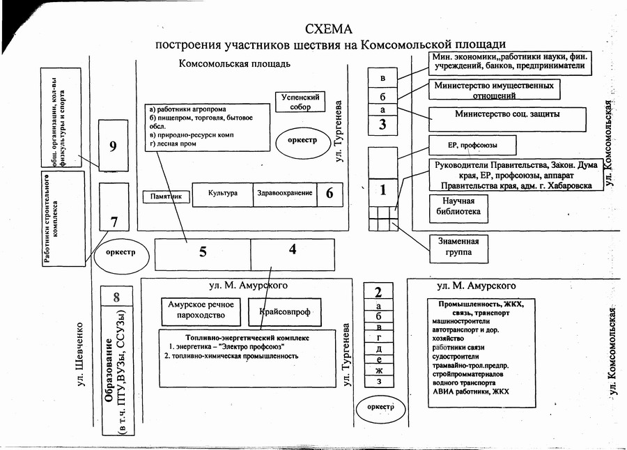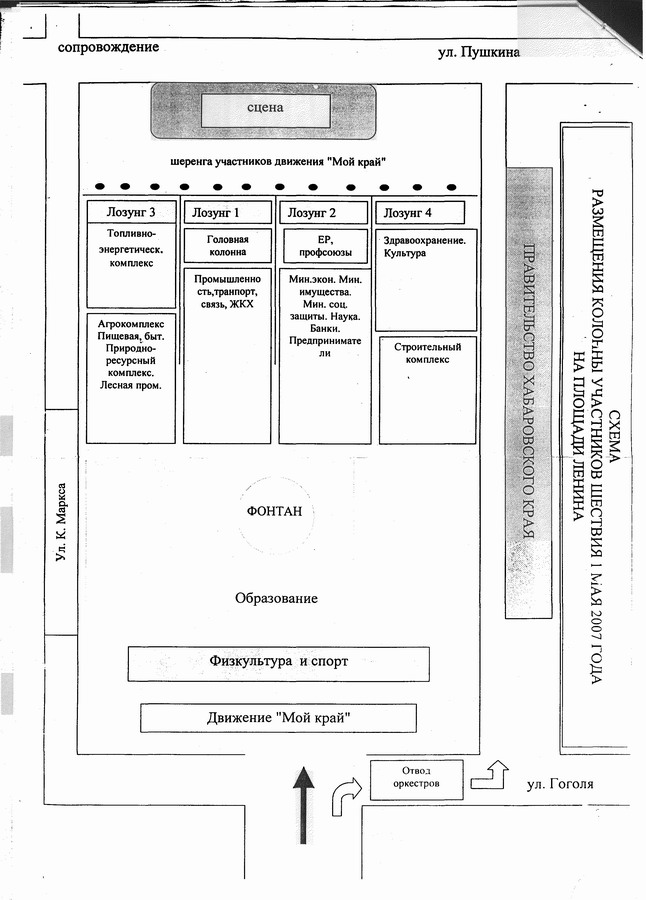 Праздничное шествие и митинг, посвященные Празднику Весны и Труда состояться 1 мая 2007 г. Сбор участников в 10.00 в местах сбора и формирования отраслевых колонн на Комсомольской площади и прилегающих к ней улицах (согласно схеме).