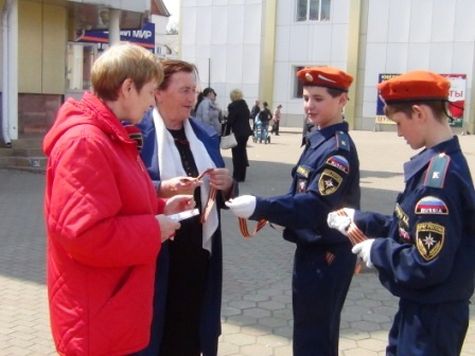 Сегодня в Биробиджане на центральную площадь «Арбат» вышли кадеты МЧС России по ЕАО и поздравляли горожан с 68-ой годовщиной со Дня Победы. Как рассказала сотрудник пресс-службы ГУ МЧС России по ЕАО Милана Кротова, ребята вручали ленточки, рассказывали биробиджанцам о том, что символизирует данный знак.