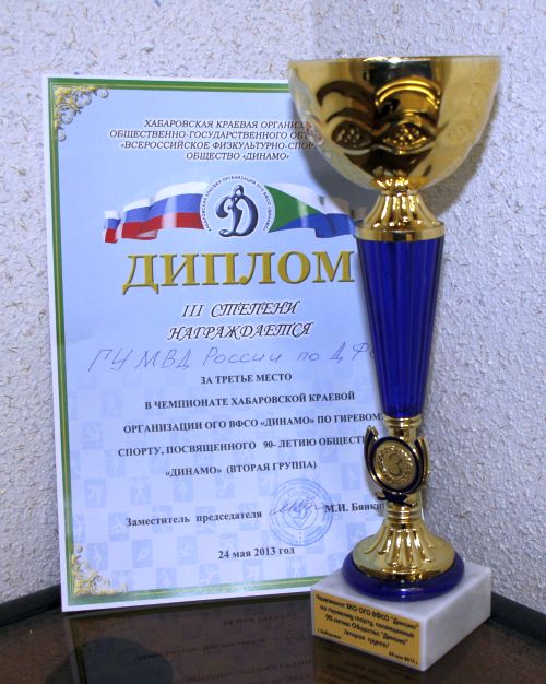 Как передает пресс-служба ГУ МВД России по ДФО, сегодня представители Хабаровской краевой организации «Динамо» вручили призерам турнира специальный кубок и диплом. Теперь эти награды займут достойное место на стендах в комнате истории Главного управления МВД России по ДФО.