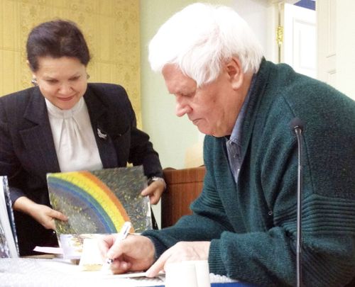 Он представил свой фундаментальный труд - книгу-альбом о тигре. Но потом ушел в дебри. И как настоящий художник, любуясь красками природы, неповторимыми ее узорами и населением, он забыл обо всем на свете, увлек за собой слушателей, тех, кто пришел на встречу с ним. Он говорил о своей судьбе и природе, которая связала и не дала уехать с Дальнего Востока.